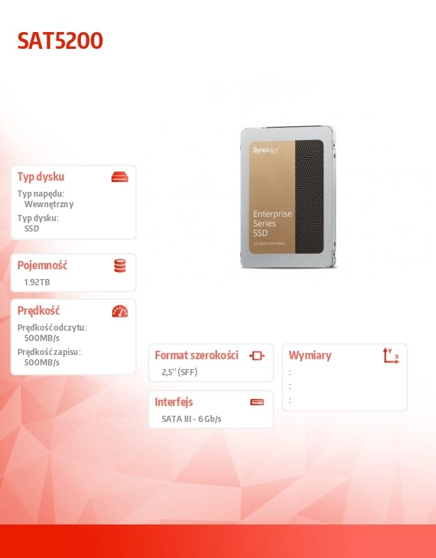 A karcsú 2,5" / 7 mm kialakítás és a SATA 6 Gb/s interfész széles körű kompatibilitást biztosít szerverekben és tárolókban. Ha megbízható, vállalati SSD-t keres Synology NAS-hoz, a SAT5200 1,92 TB teljesítményes és biztonságos választás.