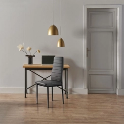 A szürke öko-bőr és fekete fém lábak kombinációja elegáns és modern megjelenést kölcsönöz a székeknek, amely bármilyen enteriőrbe illik.