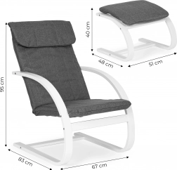A székhez tartozik egy kényelmes lábtartó, így kényelmesen nyújthatja ki lábait és teljes mértékben pihenhet. Speciális szövet és puha hab biztosítják a maximális kényelmet ülés közben.