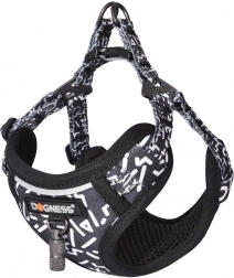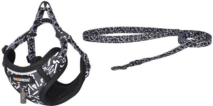 Stílusos fekete-fehér Dogness készlet egyesíti az 1,5 m hosszú pórázt és a kényelmes hámot a mindennapi sétákhoz. A strapabíró nylon, a légáteresztő háló és a masszív, cinkötvözetből készült fém elemek kombinációjának köszönhetően maximális kényelmet és biztonságot nyújt Önnek és kutyájának.