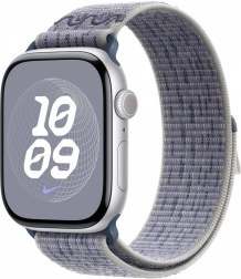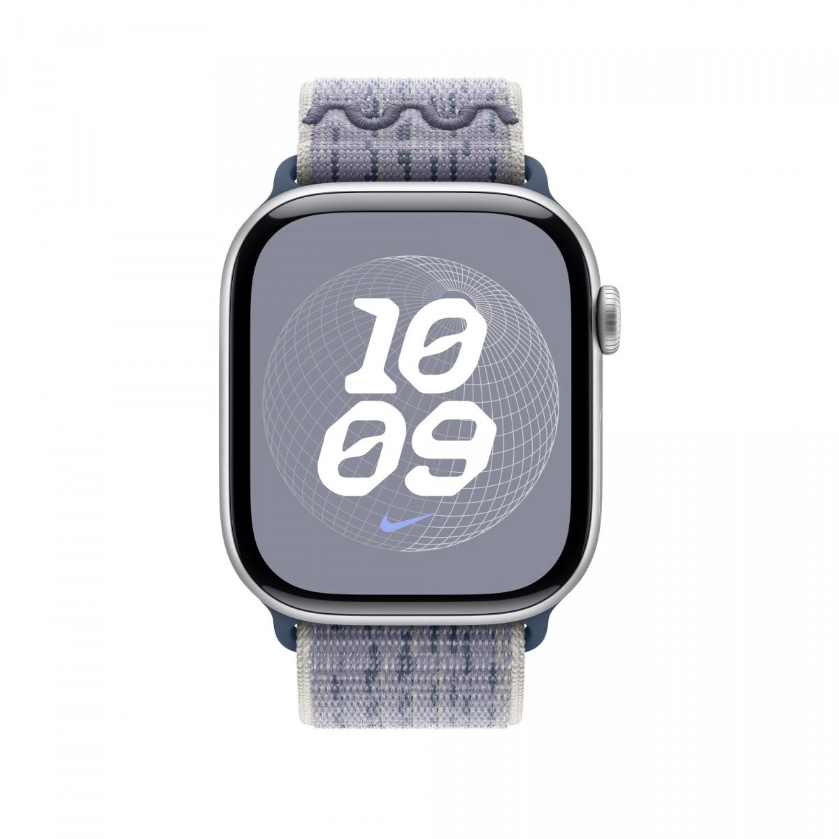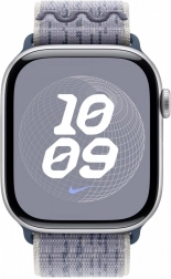 Dobd fel okosórádat a szürke–kék NIKE sport szíjjal 46 mm-es tokokhoz. A kötött nylon kellemes tapintású, jól szellőzik és rendkívül könnyű, így ideális egész napra és intenzív edzéshez is. A praktikus tépőzár kötött fedéssel és az ikonikus Nike Swoosh logóval gyors és pontos meghúzást biztosít.