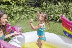 Ajánlott korosztály használatra 2 éves kortól, így a medence ideális választás a kisgyermekek számára. akik biztonságos vízi szórakozást szeretnének élvezni a szomszéd kertben.