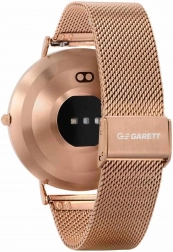Az ultravékony, könnyű ház arany színű milánói acél szíjjal kényelmes viselet. Az IP67 védelem óvja a portól és az esőtől, ideális munkához és edzéshez egyaránt.
