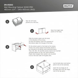 A kompakt, falra szerelhető DIGITUS SOHO PRO 19" 7U rackszekrény megbízható megoldást kínál otthoni és kis irodai környezetbe. Masszív acél konstrukciójának, legfeljebb 60 kg teherbírásának, üveg elülső ajtajának és állítható 19" profiljainak köszönhetően ideális hálózati elemek és IT berendezések számára. A szekrény lapraszerelten kerül szállításra az egyszerű szállíthatóság és a gyors telepítés érdekében a mellékelt útmutató alapján.