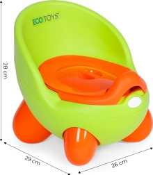 Az ECOTOYS gyerek bili funkcionális kialakítást kínál, amely vonzó a gyermekek számára, elősegítve az önállóságukat a WC használat során. Stabilitásának és ergonomikus háttámlájának köszönhetően maximális kényelmet nyújt, és támogatja a helyes testtartást.