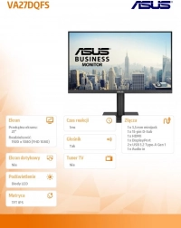 Az ASUS VA27DQFS letisztult dizájnt és praktikus funkciókat egyesít a modern irodához és otthoni munkakörnyezethez. A 27"-es képátló és az IPS technológia éles képet, következetes színvisszaadást és széles betekintési szögeket nyújt, míg a 100 Hz-es frissítési frekvencia simább görgetést, jobb olvashatóságot és kellemesebb videós élményt biztosít.