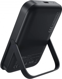 Két funkció egyben: A töltött eszközök és a powerbank egyszerre tölthetők, ezzel kiküszöbölve a további kábelek szükségességét. A vezeték nélküli töltés segít megszabadulni a zavaró vezetékektől. A kihajtható mágneses kialakítás lehetővé teszi, hogy az eszközt biztonságosan elhelyezze asztalra vagy éjjeliszekrényre. Ideális videók nézésére vagy videohívásokhoz a töltés alatt.