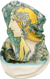 Fedezze fel az ikonikus szecessziós esztétika által ihletett, elegáns bandanát Alphonse Mucha stílusában. A Zodiak motívum művészi és időtálló karaktert kölcsönöz az öltözékének, míg a könnyű poliészter kényelmes viseletet és egyszerű karbantartást biztosít.