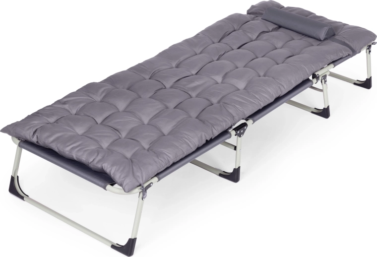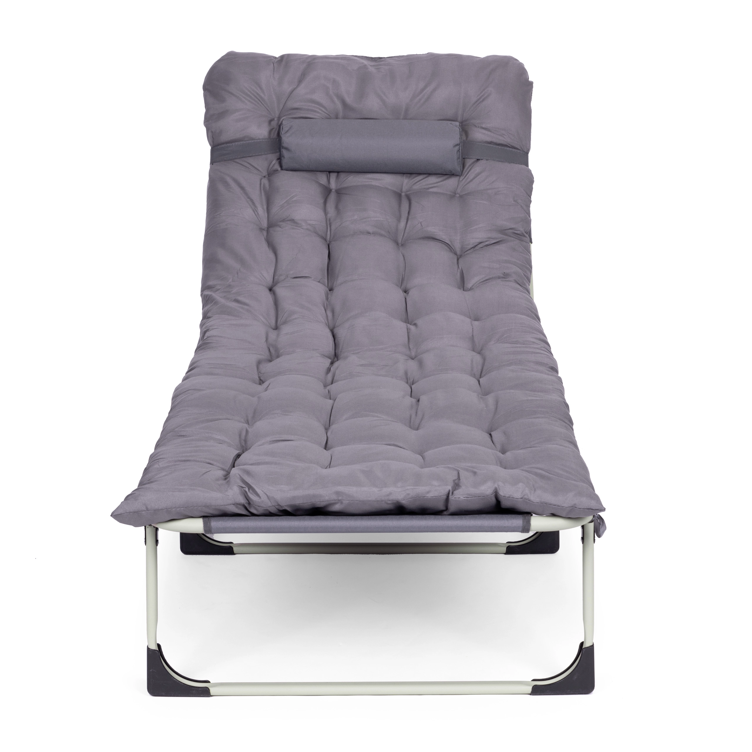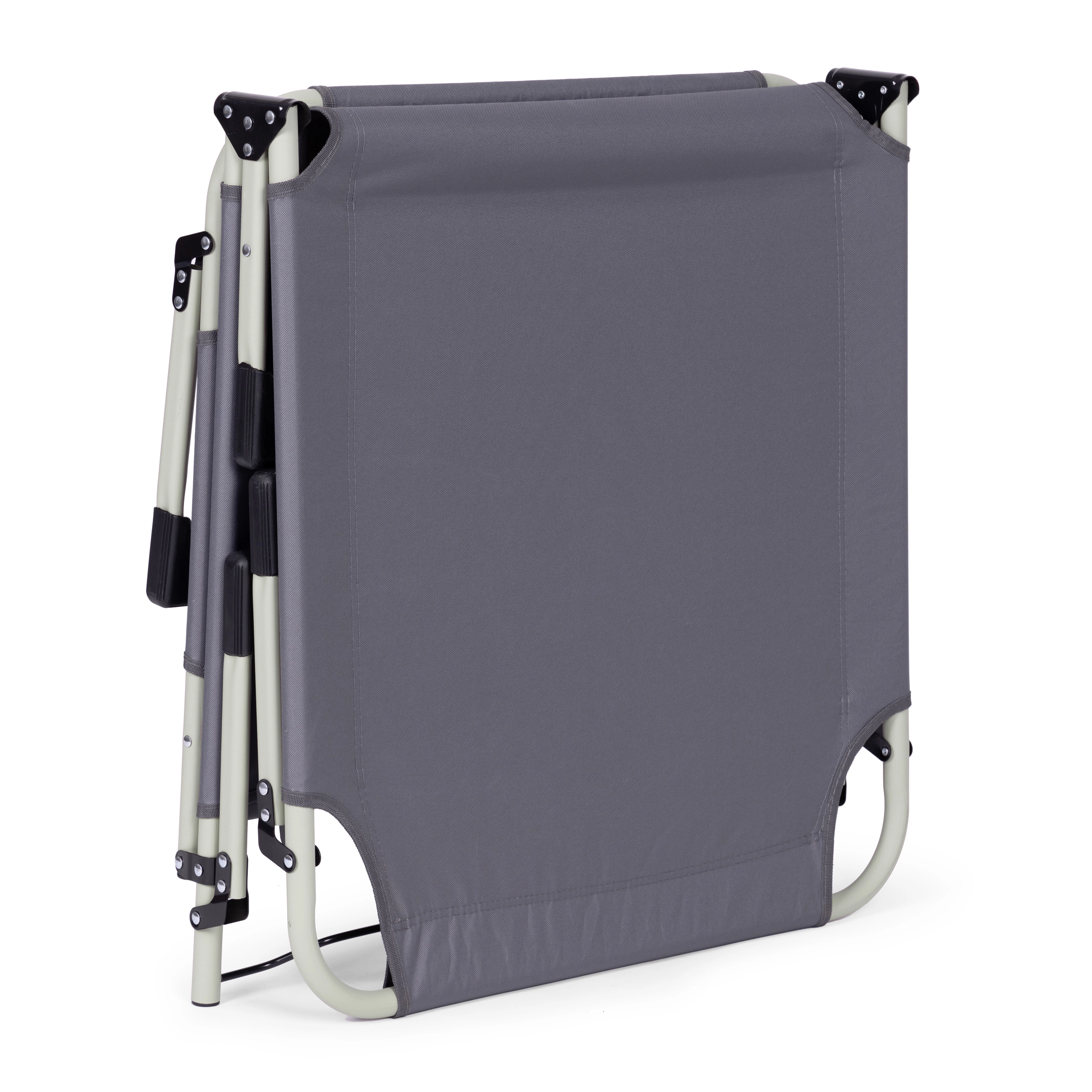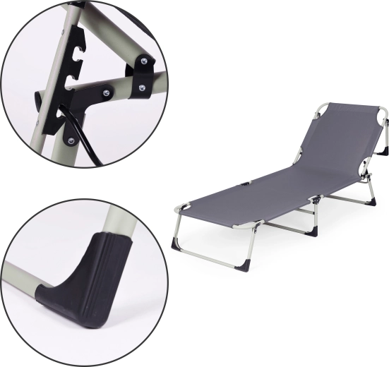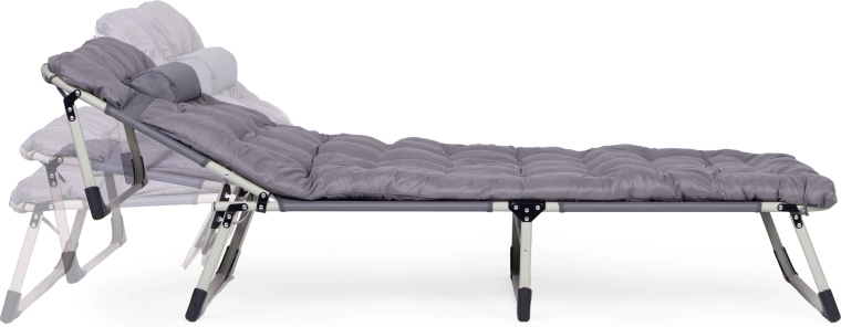 A praktikus, állítható nyugágy univerzális szürke színben tökéletes vízparti pihenéshez, a kertbe és utazáshoz is. A vastagon párnázott matrac és a levehető párna hosszabb ülés vagy fekvés közben is növeli a komfortot, míg a 4 szögben állítható háttámla lehetővé teszi a gyors váltást a relax helyzet és a teljes fekvés között.
