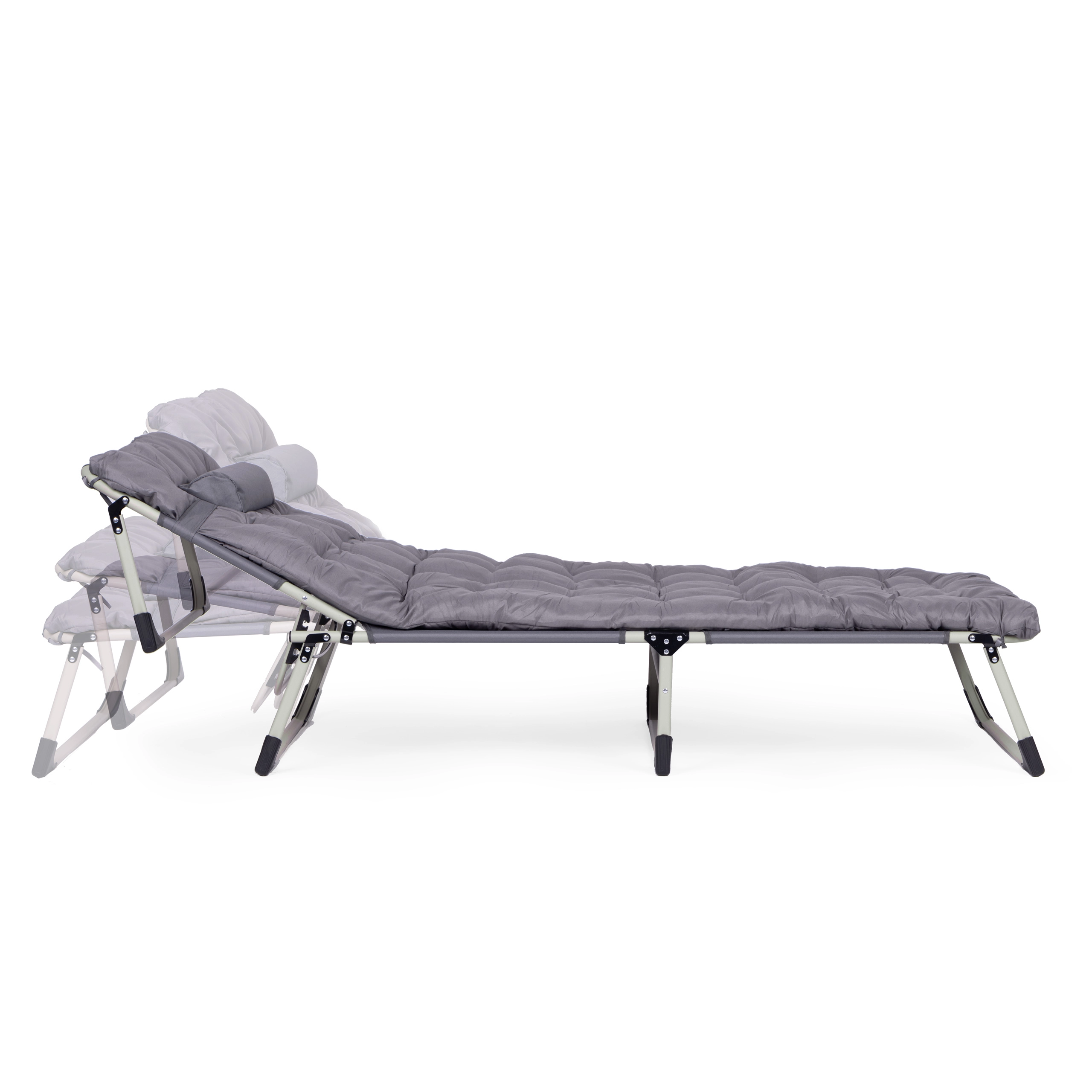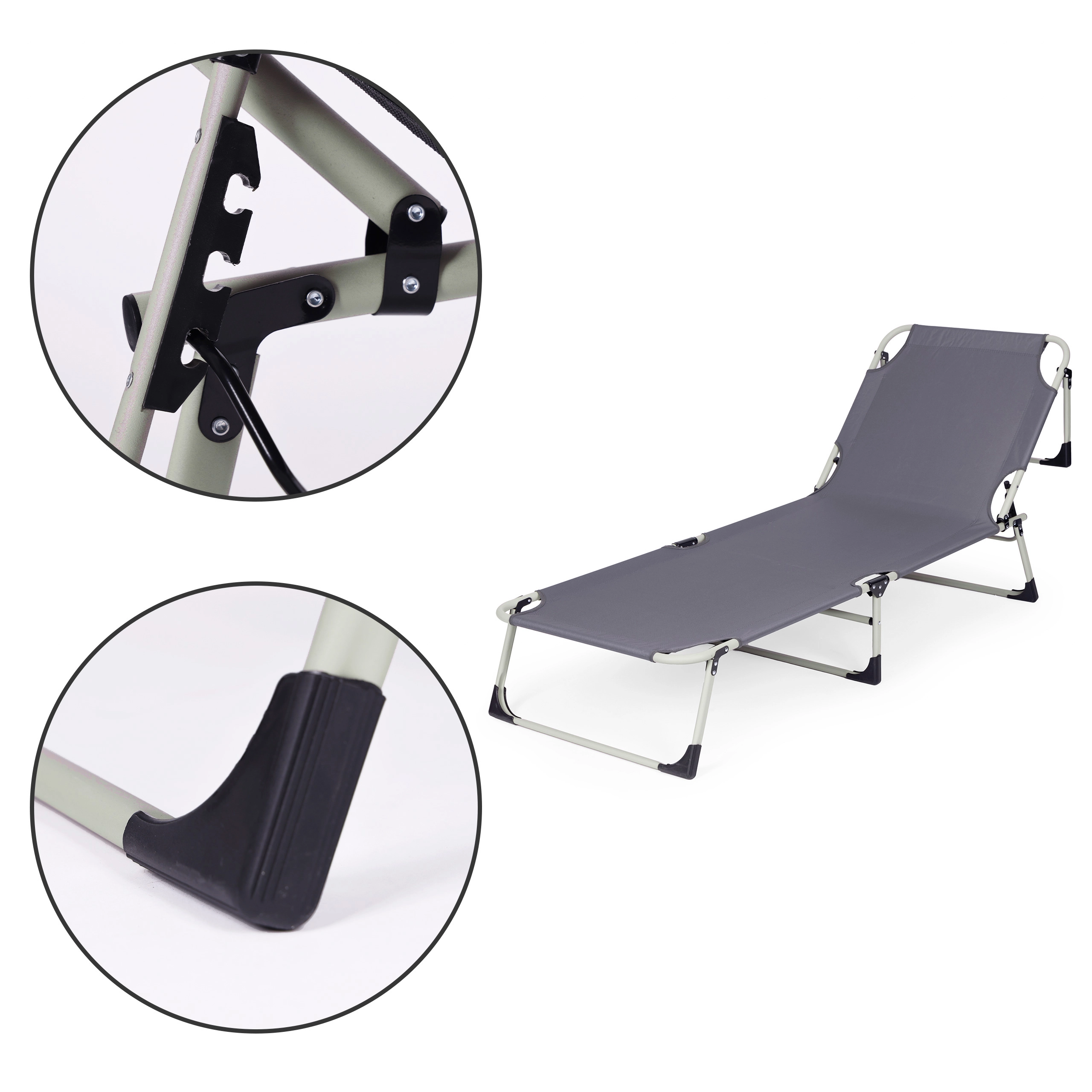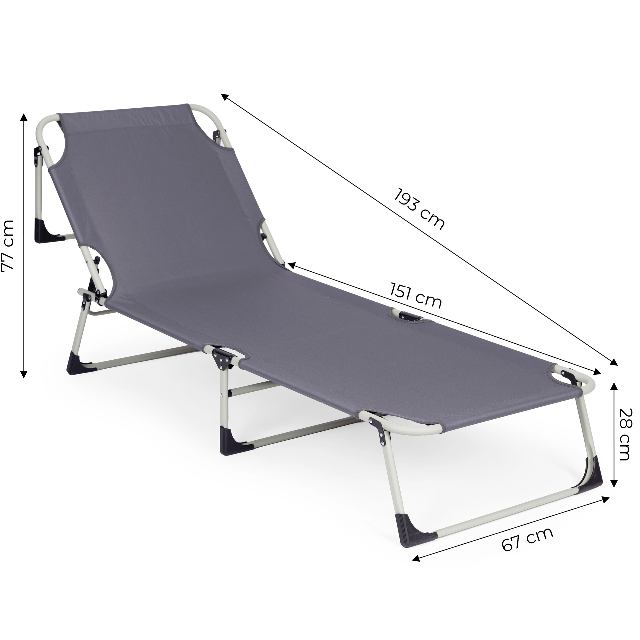 A praktikus, állítható nyugágy univerzális szürke színben tökéletes vízparti pihenéshez, a kertbe és utazáshoz is. A vastagon párnázott matrac és a levehető párna hosszabb ülés vagy fekvés közben is növeli a komfortot, míg a 4 szögben állítható háttámla lehetővé teszi a gyors váltást a relax helyzet és a teljes fekvés között.