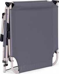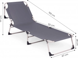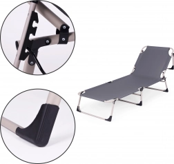 Könnyű és kényelmes nyugágy tökéletes választás bármely alkalomra. A puha matrac, kényelmes párna és állítható háttámla lehetővé teszi a hosszú órákon át tartó kényelmet a vízparton is. A csúszásgátló alátétek és a fém keret biztosítják a stabilitást és biztonságot használat során. Az univerzális szürke szín garantálja a stílust és kényelmet.