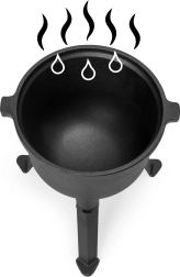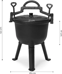 Ez a tartós öntöttvas bogrács tökéletes választás aromás ételek elkészítéséhez a szabadban, lehetővé teszi a lassú főzést, párolást és sütést. Az öntöttvas szerkezet kiváló hővezetést és ellenállóságot biztosít a sérülésekkel és magas hőmérséklettel szemben. A bogrács 3 részből áll: edény, fedő és állvány. A lábak levehetők a könnyű szállításhoz és tároláshoz.