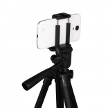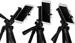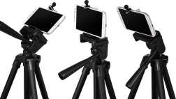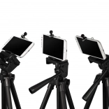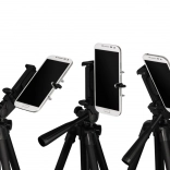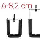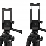 Praktikus tartó okostelefonokhoz és tabletekhez univerzális 1/4" menettel, amely lehetővé teszi az egyszerű rögzítést állványra vagy teleszkópos rúdra. A rugós szorító gumi–hab párnázással biztos és kíméletes rögzítést nyújt karcolás nélkül. Alkalmas 5,5–8,2 cm széles telefonokhoz és 11,2–18,5 cm széles tabletekhez (vízszintesen).