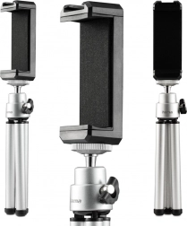 A Hama Fancy 2 az 1-ben mini állvány univerzális eszköz, amely alkalmas fényképezéshez és videofelvételek készítéséhez. Praktikus telefon tartója lehetővé teszi az eszközök gyors váltását, és kompatibilis mind telefonokkal, mind fényképezőgépekkel az 1/4'' menetes csatlakozónak köszönhetően.