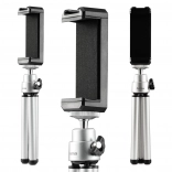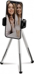 Az állvány 2 az 1-ben rendszert tartalmaz, amely okostelefon tartóként és 1/4'' menetes csatlakozóval is működik fényképezőgépekhez, növelve annak rugalmasságát.