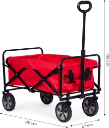 Az összecsukható szállítókocsi MultiGarden ideális megoldás kertekhez, strandokhoz és egyéb szabadtéri tevékenységekhez. A nagy gumibevonatos kerekek, az ellenálló fémkeret és a vízálló szövet révén ez a kocsi készen áll minden kihívásra.
