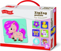 Puzzle ZigZag kis Hercegnőknek Far Far Land kiváló készlet a kis hercegnők számára, akik szeretnek új mintákat felfedezni és összeállítani. Összesen 6 csodálatos képet tartalmaz, amelyek minden kis hercegnőt lenyűgöznek.