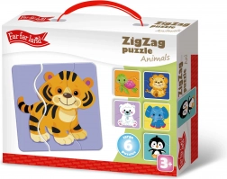 A Puzzle ZigZag a Mesebeli Vidékről szórakozást és oktatási értéket kínál a kígyózó vágási minták és a színes állatminták révén. A csomag 6 képet tartalmaz.