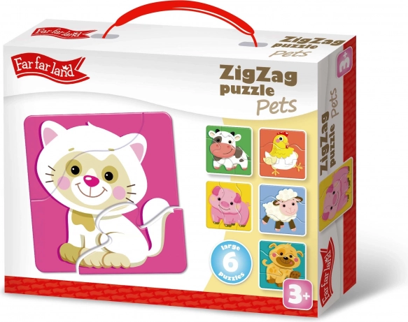 A Puzzle ZigZag Állatbarátok a Táv Táv Földtől egy játék 3 éves kortól ajánlott, amely szórakozást nyújt háziállatokkal 6 különböző képen keresztül. Színes designok és speciális cikkcakkos vágási módszer gazdagítja a játékélményt.