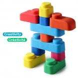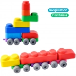 Szerelőkészlet Far Far Land szórakoztató és kreatív játék gyerekeknek! Tartalmaz 21 puha tömböt és 16 kerekeket, amelyek támogatják a gyerekek motorikus és képzelőerő fejlődését.