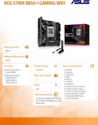 A kompakt mini‑ITX ROG STRIX B850-I GAMING WIFI alaplap csúcsteljesítményt hoz a kis házakba: PCIe 5.0 grafikus kártyához és tárhelyhez, DDR5 kétcsatornás támogatással, robusztus tápellátás high‑end gaminghez és Wi‑Fi 7 az ultragyors csatlakozáshoz. A fejlett hűtés nagy terhelésnél is stabilitást biztosít, és készen áll AI PC alkalmazásokhoz.