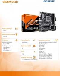 A GIGABYTE B850M DS3H alaplap AMD AM5 foglalathoz egykattintásos X3D Turbo móddal könnyű játékteljesítmény-növelést, Ryzen 9000/8000/7000 processzortámogatást, kétcsatornás DDR5-öt, rendkívül gyors tárhelyet M.2 PCIe 5.0-val és 2,5 GbE hálózatot kínál – mindezt praktikus kivitelben, EZ-Latch okos reteszekkel a csavarmentes szereléshez.