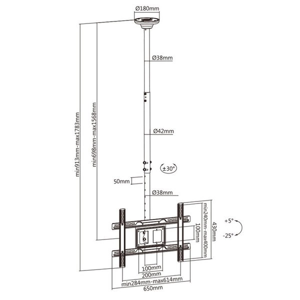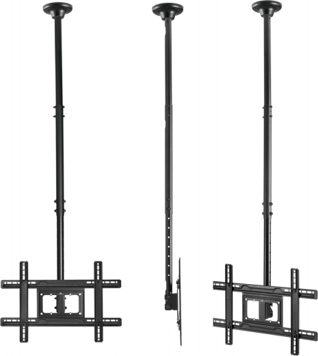 A mennyezeti tartó kiváló választás otthonokba, irodákba és nyilvános terekbe, ahol helyet kell megtakarítani, miközben a megjelenítés maximális rugalmassága szükséges. A masszív fém kivitel akár 50 kg-ot is elbír, és a széles VESA furattávolság-kompatibilitásnak köszönhetően a legtöbb OLED, QLED, LED, LCD és plazma televízió könnyen rögzíthető.