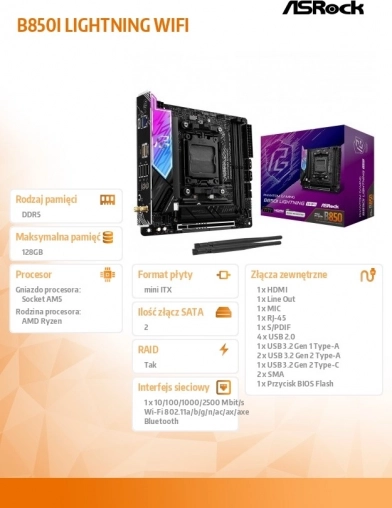 ASRock B650I Lightning WiFi mini‑ITX alaplap AMD RYZEN-hez (AM5, DDR5)