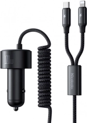 A beépített USB‑C és Lightning kábelek használat után könnyen behúzhatók. A spirál kialakítás megakadályozza a gubancolódást, és rendet tart az autóban.