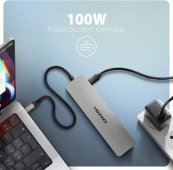 - PD 3.0 akár 100 W – a laptop tápellátása a hubon keresztül, portmegtakarítás