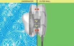 A belső egység vezeték nélkül kap áramot a medence falán keresztül. Nincs közvetlen érintkezés az áram és a víz között – maximális biztonság fürdőzéshez.