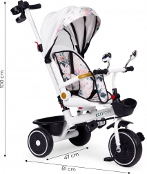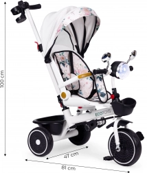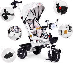 A szülők értékelni fogják a teljes irányítást, mivel a vezetőrúd össze van kötve a háromkerekű kormányával. A szerkezet stabilitásra (széles hátsó tengely), könnyű karbantartásra és hosszú élettartamra készült. A maximális teherbírás 25 kg, a háromkerekű súlya mindössze 7,8 kg – ideális társ a mindennapi sétákhoz.