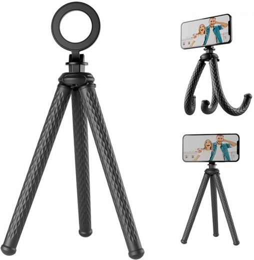 Az állvány egyedi, polipszerű formája lehetővé teszi, hogy szinte bármilyen felületen stabil legyen. A rugalmas alumíniumrudak, amelyekből az állvány készül, szabadon alakíthatók és különféle tárgyak köré tekerhetők. Ez a funkció teszi az állványt rendkívül sokoldalúvá és tökéletessé különféle felhasználási szcenáriókhoz, beleértve az otthoni videóblogot és a kültéri fotózást.