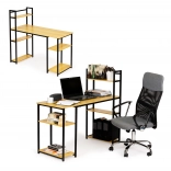 Az íróasztal modern designt kombinál praktikusságával. A nagy munkafelület elegendő helyet biztosít a munkához, míg a tartós laminált kivitel hosszú élettartamot és luxus megjelenést biztosít. Az asztal oldalán hat polc található a munkahely hatékony szervezése érdekében.