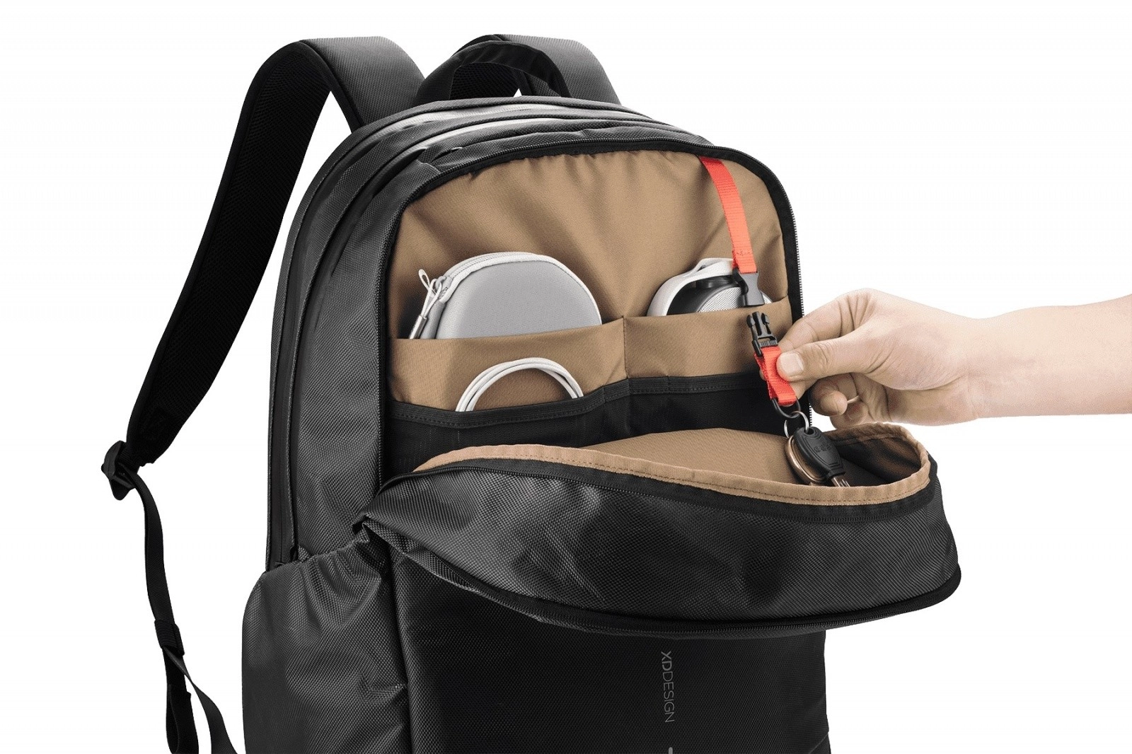 Stílusos és maximálisan biztonságos hátizsákot keresel városba és utazáshoz? A Bobby Explore black lopásgátló kialakítást kínál hátrafelé nyíló hozzáféréssel, rejtett cipzárakkal és RFID-védett zsebekkel. A vízálló YKK cipzáraknak és az újrahasznosított RPET-ből készült hidrofób szövetnek köszönhetően a felszerelésed szárazon és biztonságban marad.