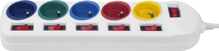 Az 5 aljzat mindegyikéhez saját kapcsoló tartozik – egyszerűen kikapcsolhatja azt az eszközt, amelyet épp nem használ, kábelek kihúzása nélkül.