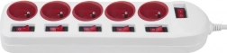 Ez a masszív tápcsík öt teljes értékű aljzatot kínál független billenőkapcsolókkal, amelyek lehetővé teszik az egyes készülékek kikapcsolását a dugók kihúzása nélkül. A praktikus kialakítás és a jól áttekinthető piros elemek megkönnyítik a mindennapi használatot.