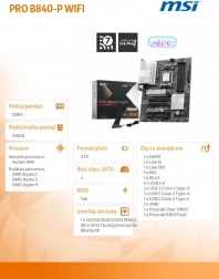 Az MSI PRO B840-P WIFI letisztult, harmonikus ezüst‑fekete dizájnjával remekül illik fehér és fekete konfigurációkba is. A nagy teljesítményű Direct 7+2+1 tápkör, a 2 uncia rézzel készült 6 rétegű PCB, valamint a Core Boost és Memory Boost technológiák stabilitást és csúcsteljesítményt kínálnak a modern AMD Ryzen processzorok számára.