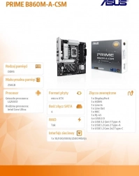 Az ASUS Prime B860M-A CSM alaplap megbízható teljesítményt nyújt Intel Core Ultra processzorokhoz és modern felszereltséget kínál a gyors, stabil összeállításokhoz. Az Intel B860 chipkészletnek, a DDR5 akár 256 GB támogatásának és a PCIe 5.0/4.0 csatolóknak köszönhetően kiváló átviteli sebességet, bővíthetőséget és hosszú élettartamot biztosít a kompakt microATX 24,4 × 24,4 cm formátumban.