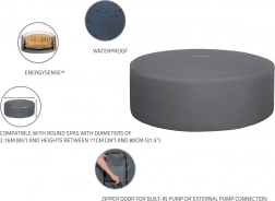 Tartsa pezsgőfürdőjét melegen és takarékosan a Bestway Lay‑Z‑Spa EnergySense Plus termikus fedéllel, amely a 216 cm átmérőjű, kerek modellekhez készült. A DuraPlus anyagból készült dupla szigetelés jelentősen növeli az energiahatékonyságot akár 40%-kal, felgyorsítja a víz felmelegedését, és csökkenti a üzemeltetési költségeket. A állítható, csatokkal ellátott pánt tökéletes illeszkedést biztosít, a cipzár lehetővé teszi a beépített és külső szivattyú csatlakoztatását a fedél eltávolítása nélkül, a strapabíró kialakítás pedig védi az időjárástól.