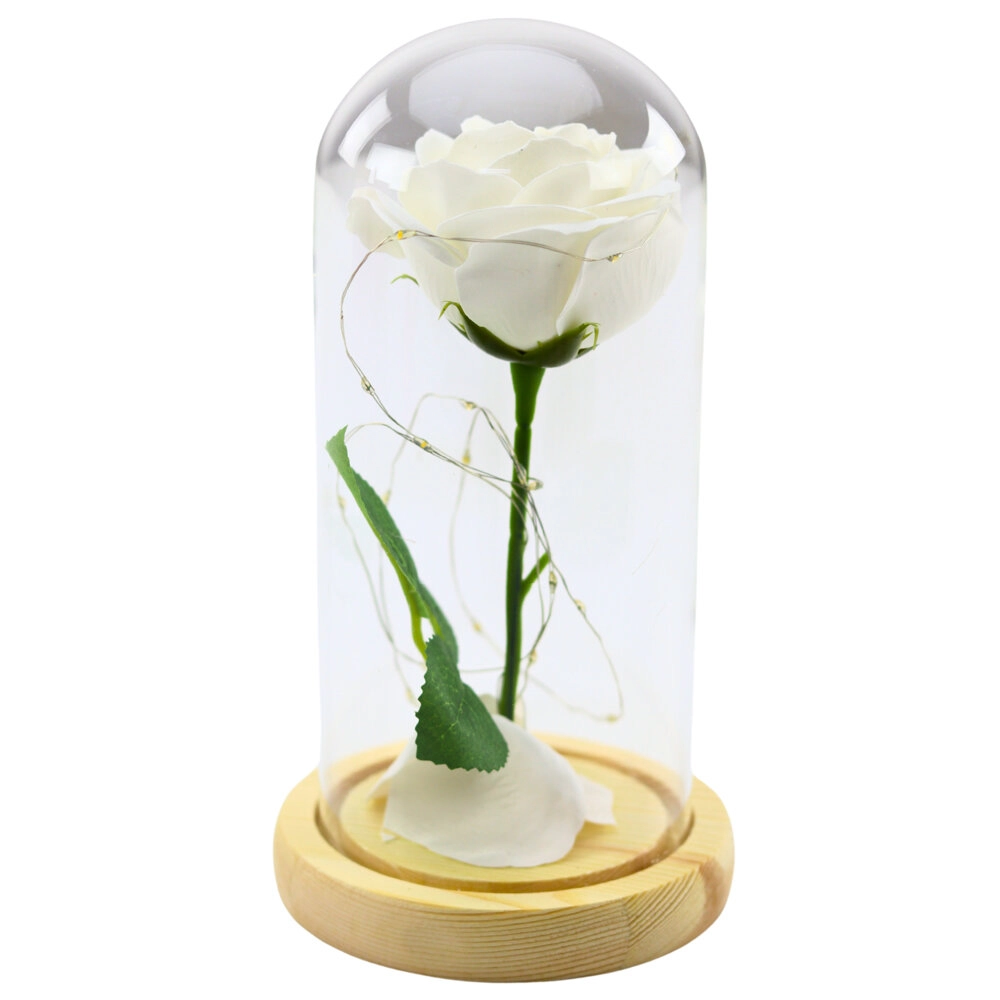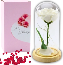 Az örök fehér rózsa üvegkupolában LED világítással ideális ajándék mindazoknak, akik értékelik az eleganciát és a szimbolikát. Ez a mesterséges rózsa, amely tökéletesen utánozza a természetes virágot, soha nem hervad el, és mindig frissnek tűnik. Az üvegkupola alatt zárva, finom LED fénnyel megvilágítva