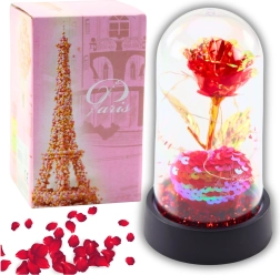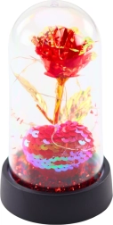Fedezze fel az örök kristály rózsa szépségét az átlátszó kupola alatt, amely eleganciájával bárkit elbűvöl. Ideális azok számára, akik olyan szerelmi kifejezést kívánnak adni, amely sosem hervad el. Az LED világítás gyengéden megvilágítja a rózsát, amely meghittséget és romantikát kölcsönöz az atmoszférának.
