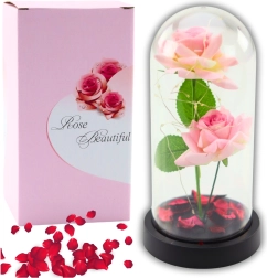 Az örök rózsák LED világítással ellátott kupolában elegáns és szimbolikus ajándék, amely kifejezi érzelmeit és különleges jelleget ad minden beltéri környezetnek. A kupolában két műrózsa található, és a kupola térben szirmok lebegnek, amelyek finom LED fénnyel együtt utánozhatatlan légkört teremtenek, ideális romantikus alkalmakra.