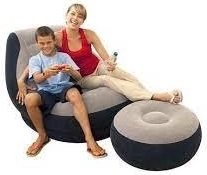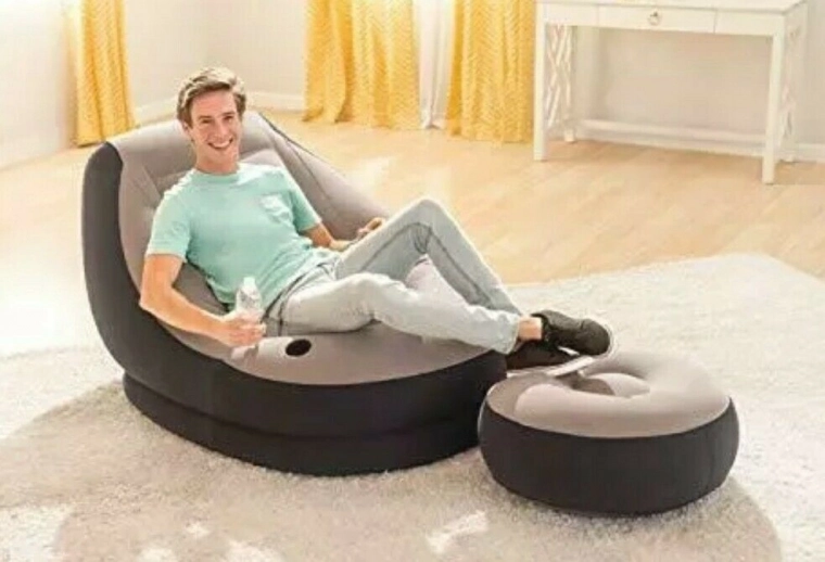Kényelmes felfújható fotel lábtartóval, ideális beltéri és kültéri használatra. Lehetővé teszi, hogy a pihenés perceit maximális kényelemben élvezze.