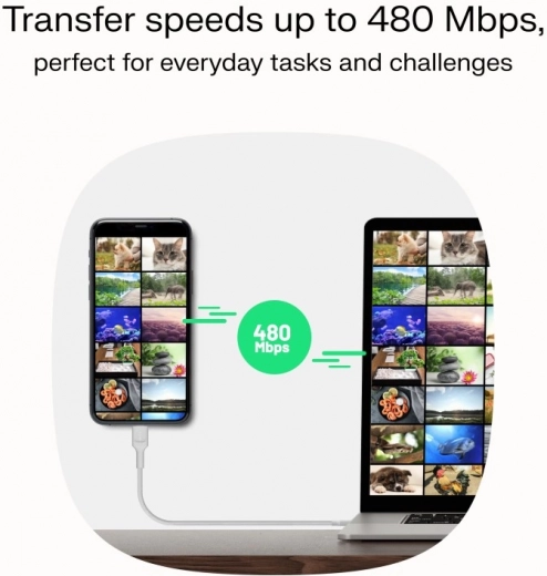 Az USB Power Delivery (PD) technológia támogatásának köszönhetően ez a kábel ultragyorsan tölt akár 100 W-ig is. Az akár 480 Mbps adatátviteli sebesség biztosítja az adataid hatékony és késések nélküli továbbítását.