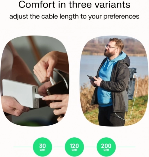 Válaszd ki a neked megfelelő hosszúságot. A PowerStream 30 cm, 120 cm és 200 cm hosszúságban érhető el, így kényelmesen használhatod az aktuális igényeid szerint.