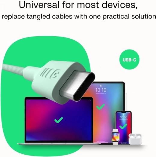 A PowerStream kábel kiváló minőségű fonott nejlonból készült, amely ellenáll a napi kopásnak. Akár otthon, akár útközben használod, ez a kábel hajlításnak és csavarásnak is ellenáll károsodás nélkül.