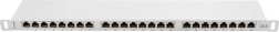 A panel 24 árnyékolt RJ‑45 Cat.6 porttal van szerelve, univerzális IDC/LSA sorkapcsokkal, amelyek kompatibilisek a T568A/B szabványokkal. A 0,5U magasság helyet takarít meg a rackben, a fogantyús polc pedig megkönnyíti a kábelezés rendszerezését és rögzítését. A jól olvasható portszámok felgyorsítják az üzemeltetést és a szervizelést.