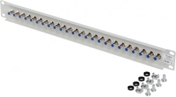 A 24 átmenő F–F csatlakozóval szerelt patch panel ideális megoldás a koaxiális infrastruktúra rendezett kialakításához és kezeléséhez adat-, TV- és SAT hálózatokban. A 19" szabvány és az 1U magasság révén bármely 19"-es rack szekrénybe könnyen beszerelhető.