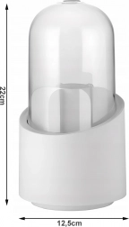 A kupolaszerű fedél megvédi a kozmetikumokat a szennyeződésektől, miközben átláthatóvá teszi a tartalmat.